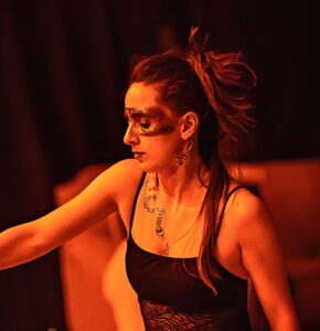 Sayil Johansson, organizadora del Valencia Fusion Exchange, bailarina, profesora de danza y psicóloga gestalt con formación en somática. Su trabajo nace de la integración de distintas disciplinas que despiertan la conexión interna, la escucha y la expresión auténtica, transformando el cuerpo en un lenguaje vivo de presencia y vínculo. Con más de veinte años de experiencia en danza oriental, y formación en danzas persas y giro derviche, su recorrido se amplía también hacia los bailes de pareja como el tango, el forró y otras danzas sociales, que nutren su mirada del encuentro y la comunicación en movimiento. En sus clases propone espacios seguros, sensibles y creativos, donde la profundidad en la conexión, el vínculo y el juego se convierten en herramientas fundamentales para explorar, disfrutar y compartir la danza.